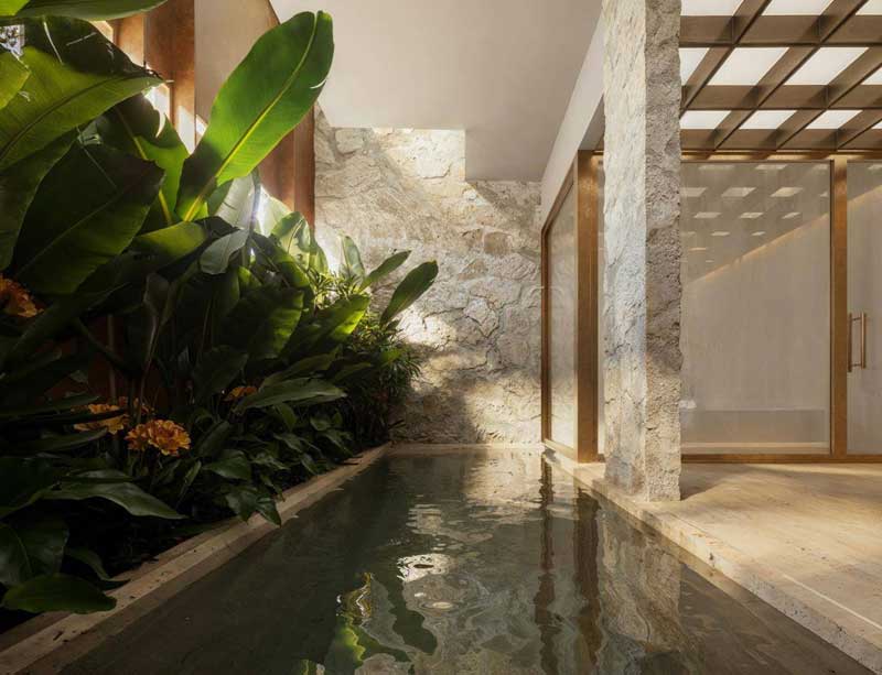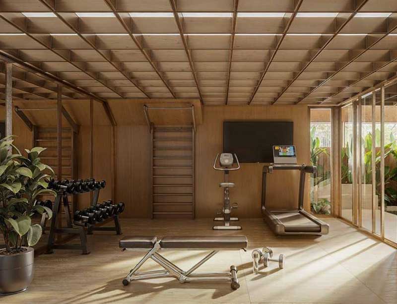 The exclusivity of L’Azur extends to its wellness areas. In the basement, a stunning SPA was designed to offer an oasis of tranquility, complete with a heated pool, steam sauna, relaxation area, and a modern gym. Every detail of the project is elevated by the art curation from Aura Galeria, transforming L’Azur into a true aesthetic and sensory experience.